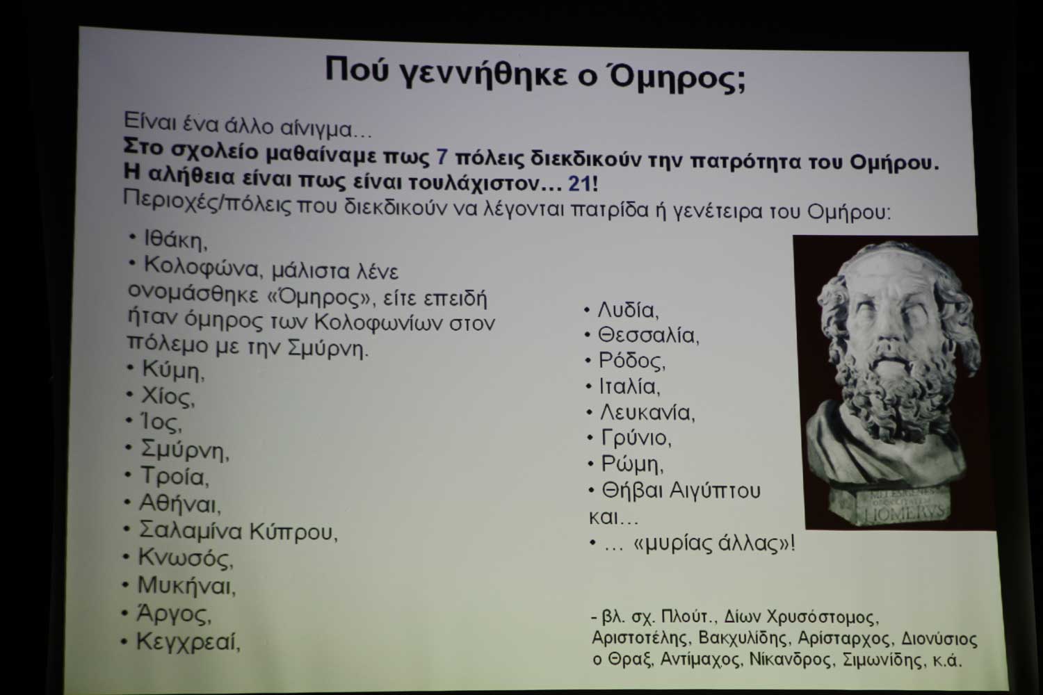 Παρ’ όλο το δύσκολο του θέματος («Αρχαίοι σχολιαστές του Ομήρου και άλλες πηγές για τα ομηρικά») ο κόσμος παρέμεινε στις θέσεις του, για περισσότερο από μια ώρα, και άκουγε τον ομιλητή να μιλά, για πρόσωπα, γεγονότα και πράγματα που ήταν άγνωστα ακόμη και σε ειδικούς ομηριστές-φιλολόγους…